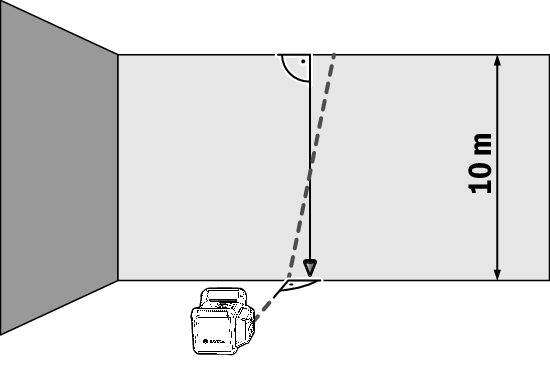 Für die Kalibrierung benötigen Sie eine freie Messstrecke auf festem Grund vor einer 10 m hohen Wand. Befestigen Sie eine Lotschnur an der Wand.