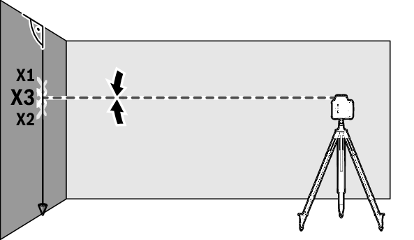 Richten Sie den variablen Laserstrahl (8) mithilfe der Neigungstasten abwärts (5) bzw. aufwärts (15) so aus, dass er die Höhe X3 möglichst genau trifft. Bei Bedarf verwenden Sie dazu den Laserempfänger (37).