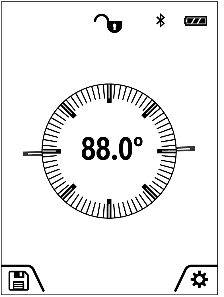 测量仪的左侧面用作倾斜度测量的基准面。测量过程中如果显示开始闪烁,说明测量仪过度侧向侧倾。