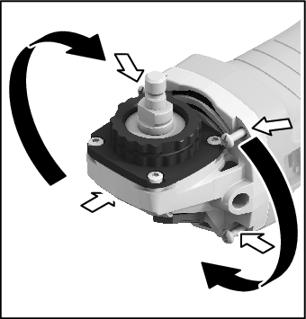 Completely unscrew the four screws. Rotate the machine head carefully, without removing it from the housing, into the new position. Screw in and retighten the four screws.