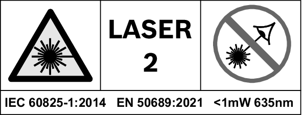 | Do not direct the laser beam at persons or animals and do not stare into the direct or reflected laser beam yourself. |