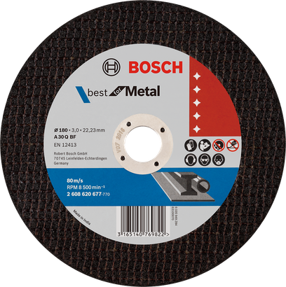 - Bosch cutting discs comply with the maximum safety requirements, such as EN 12413, FEPA and oSa