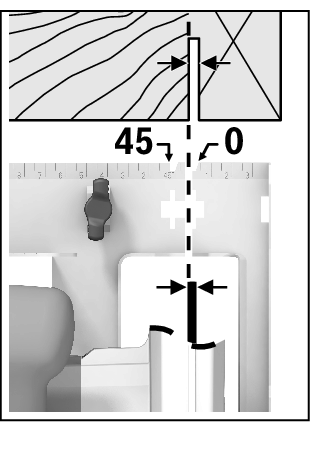 Note: When making mitre cuts, the cutting depth is less than the value shown on the cutting depth scale (23).