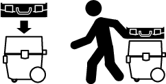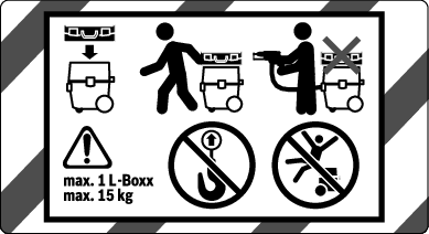 L‑Boxx takılıyken emme işlemi gerçekleştirilmemelidir. Elektrik süpürgesinin ağırlık noktası yukarı taşınır. Elektrik süpürgesi devrilebilir. Yaralanma ve hasar tehlikesi vardır.
