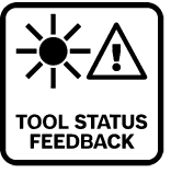 The LED worklight (8) is used as a status indicator for device protection and low battery status: