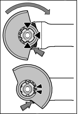 Press the protective guard (9) onto the spindle collar until the shoulder of the protective guard is sitting on the flange of the power tool and rotate the protective guard until it audibly clicks into place.